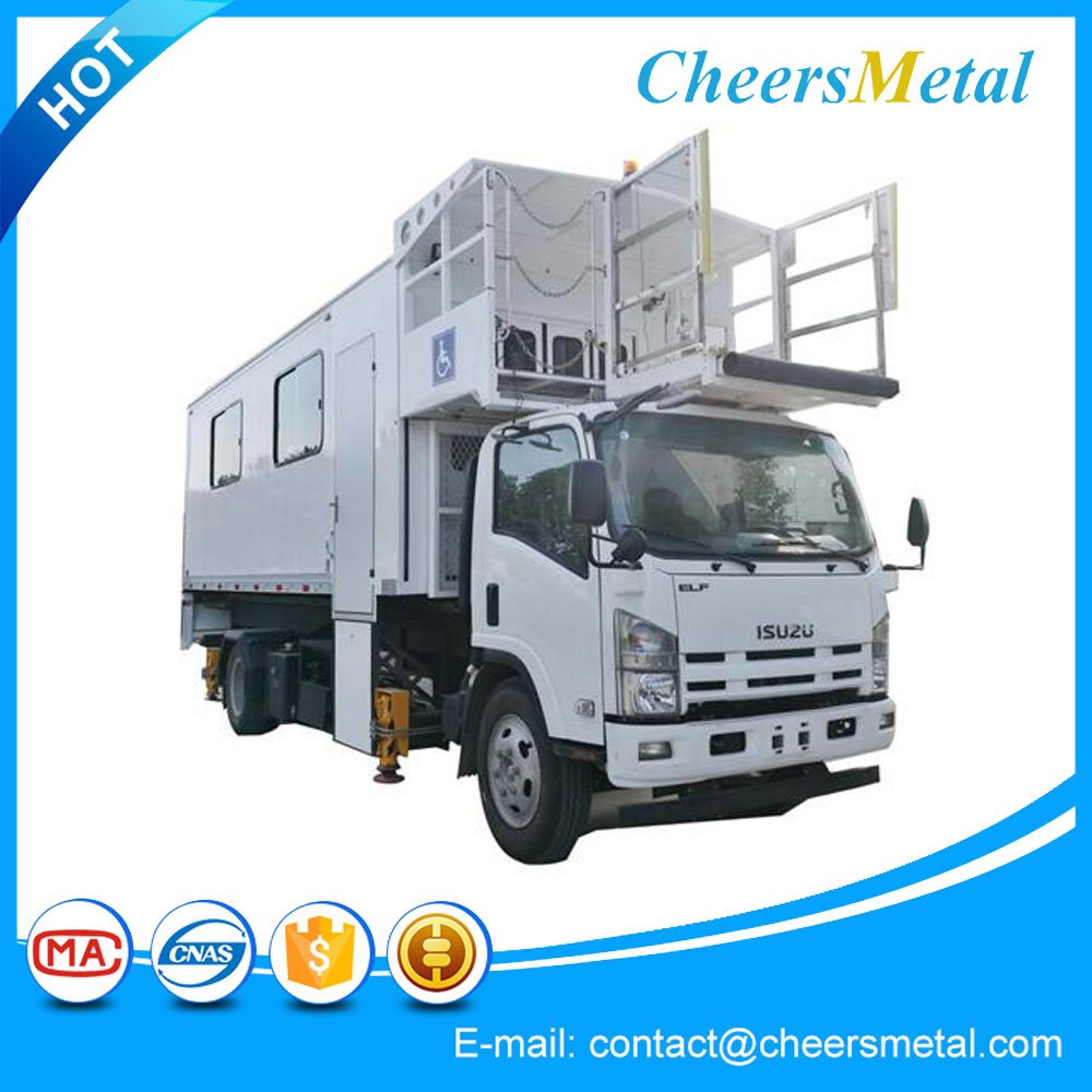 An aircraft disabled boarding truck, also known as an aircraft ambulift or aircraft wheelchair lift, is a specialized vehicle used at airports to provide safe and comfortable boarding and disembarkation for passengers with reduced mobility or disabilities. These trucks are designed to ensure that passengers with limited mobility can access and exit the aircraft easily and efficiently.